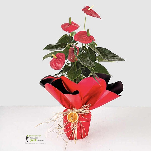 Orta Boy antoryum (anthurium) 50cm yüksekliginde bol çiçekli tropikal ve dekoratif salon bitkisi .Bulundukları her mekana hayat katan saksı çiçekleri, sizin en sadık ev arkadaşınızdır. Gelin bu en sadık dostlardan birini Aksaray Çiçek Dünyası’ nden seçin, onlar da hem hayatınıza hem yaşadığınız yere hayat versin!