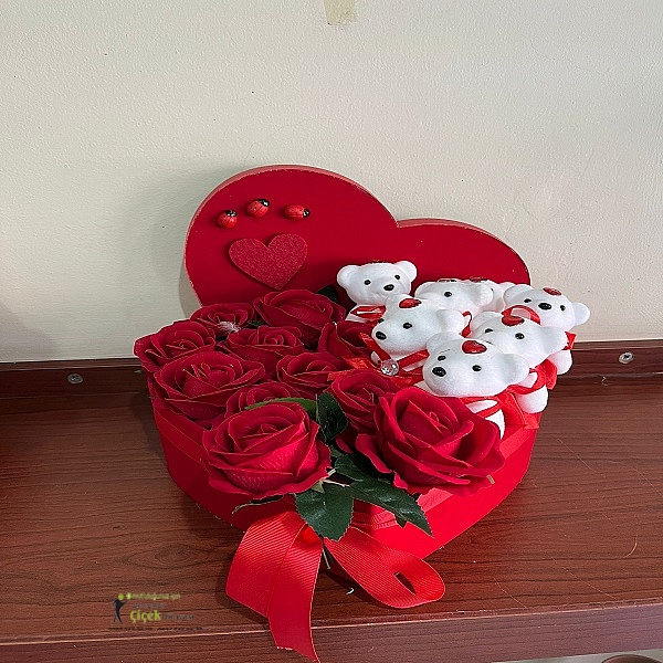 Kalp kutuda gül ve ayıcıklar